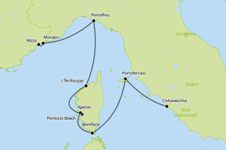 1. nap Repülés Nizzába/Franciaországba. Érkezés és városnézés Nizzában. Végighaladnak a híres Promenade des Anglais sétányon, amely mentén számos, a Belle Époque korszakból származó palota sorakozik közvetlenül a Baie des Anges azúrkék Földközi-tengere mellett. Nizza óvárosa számos látnivalót kínál, többek között a híres virágpiacot és a katedrálist. Egy nizzai utazás sem teljes az olajfaliget meglátogatása nélkül, ahol sok évvel ezelőtt rómaiak és ferences szerzetesek telepedtek le. Transzfer a kikötőbe és beszállás. A hajóút kezdete 22:00 órakor.