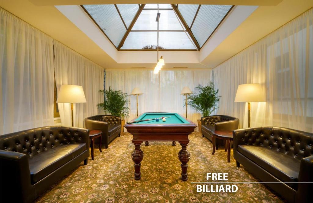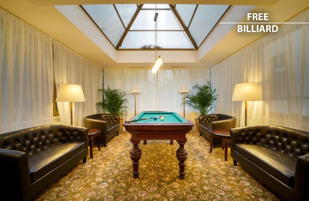 A pihenésre kiváló lehetőséget nyújt a terasz. A tökéletes kikapcsolódásról a medencerészlegen található pezsgőfürdő gondoskodik. A változatosságot a színes kínálat biztosítja, többek között kerékpározás/ mountain bike-ozás, egy edzőterem, biliárd, egy gyógyfürdő, egy szauna és masszázs kezelések.
