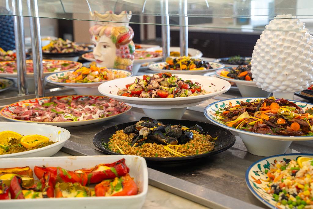 Foglalható félpanziós ellátás, teljes panziós ellátás és all inclusive ellátás. Reggeli, ebéd és vacsora külön is szerepel a kínálatban. Külön kérésre szívesen készítenek gluténmentes ételeket és vegetáriánus ételeket. A fő étkezések mellett snackeket is kínálnak. Egyik különlegesség a látványkonyha. A vendégek italfogyasztása az árban benne foglaltatik. Alkoholmentes italok és alkoholos italok is kaphatók.